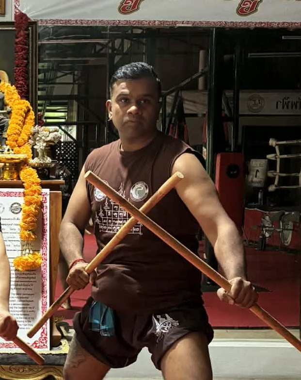 (Having studied, trained, and taught Muay Chaiya under various teachers for over twelve years,) he has now deepened his understanding of the official curriculum through the Tactical Thai Sword Group.